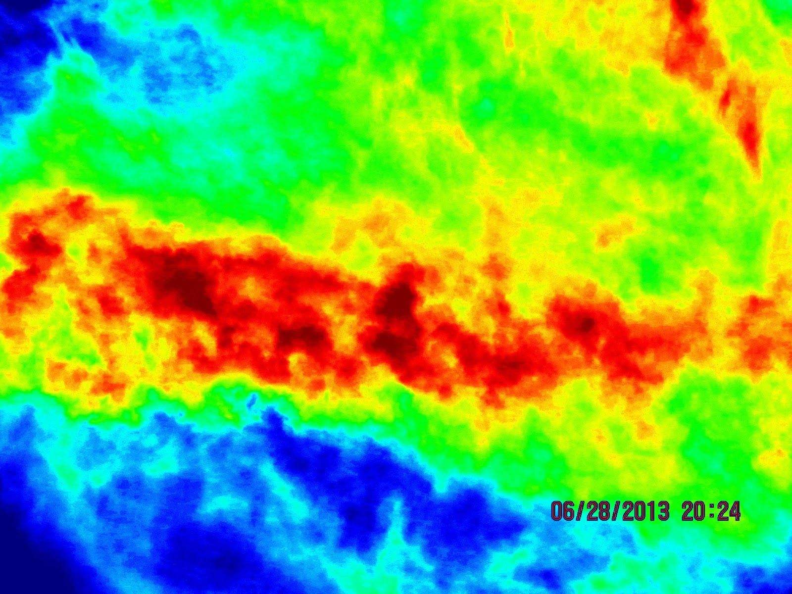 I had a special visitor on my Friday Evening Walk: A Mississippi Kite. He sat on the wire while I walked the road. Birds appear to be sitting still on the wires if You just casually glance at them. Actually, they are moving all the time-watching, hunting or preening. I snapped quite a few shots of Mr Kite and made a slideshow so You can see his movement in and out of the shadows. This is really a fine bird to have for a visit! Your photostudy tonight is Skyscapes with the added Picasa effect of 'Heat Map'. I had a request for more of these colorful, hot clouds, so enjoy!